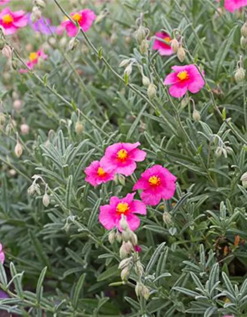 Das Garten-Sonnenröschen 'Sudbury Gem' (Helianthemum) An einem sonnigen Standort mit durchlässigem, lockerem, trockenem Boden erreicht es gewöhnlich eine Höhe von ca. 25 cm und wird ca. 25 cm breit. Das Garten-Sonnenröschen 'Sudbury Gem' ist gut frostverträglich.