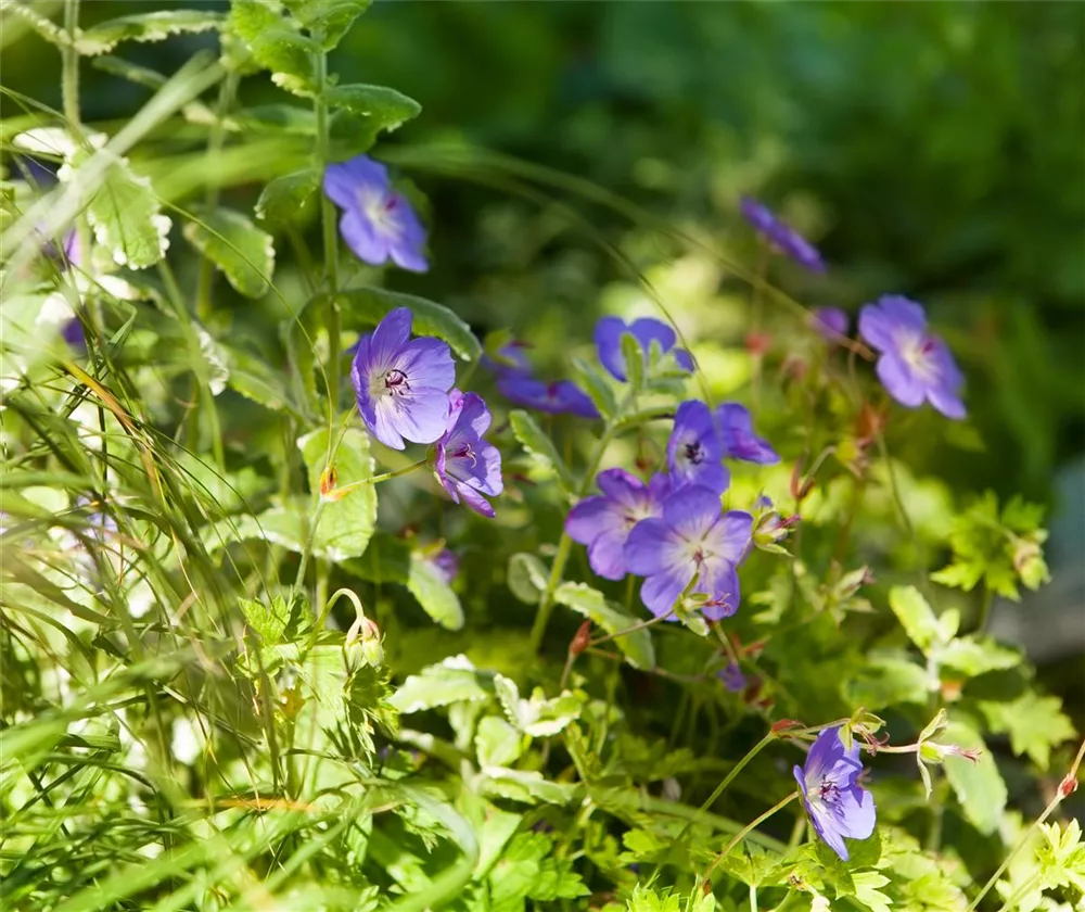 Geranium wallichianum 'Rozanne'® bildet blaue Blüten ab Juni.