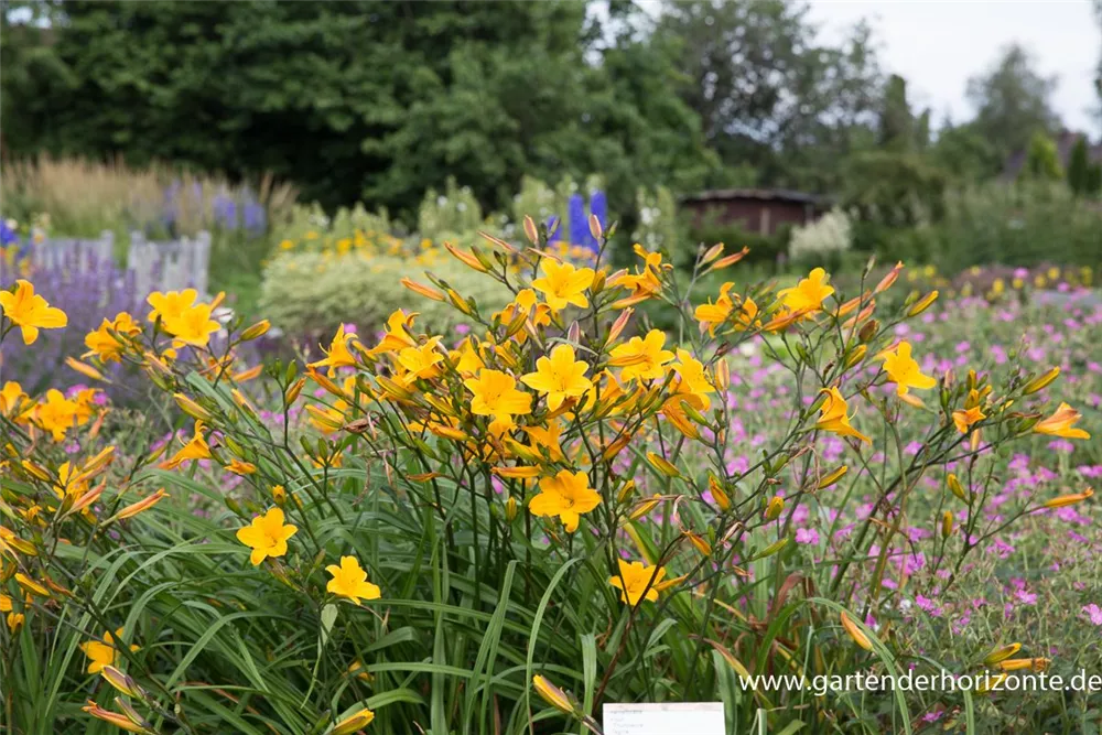 Die Garten-Taglilie 'Thumbelina' setzt schöne Akzente gemeinsam mit: