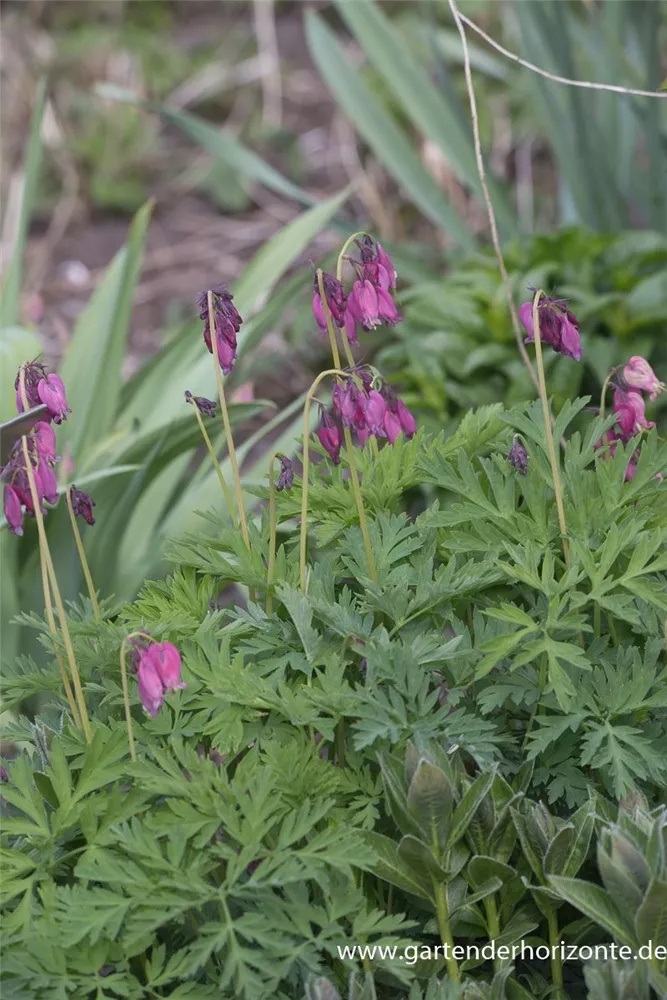 Die Zwergige Garten-Herzblume (Dicentra eximia) ist eine buschige, kriechende Staude, die von Mai bis August rosafarbene, in Trauben angeordnete Blüten bildet. An einem halbschattigen bis schattigen Standort mit durchlässigem, kalkfreiem, nährstoffreichem Boden erreicht sie gewöhnlich eine Höhe von ca. 30 cm und wird ca. 40 cm breit. Die Zwergige Garten-Herzblume ist gut frostverträglich.