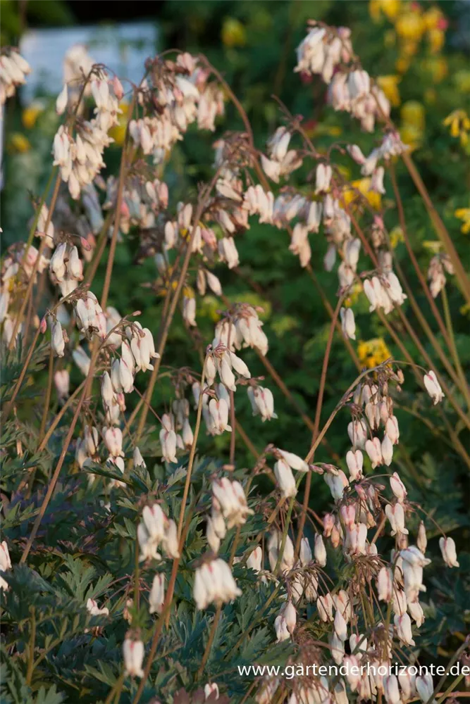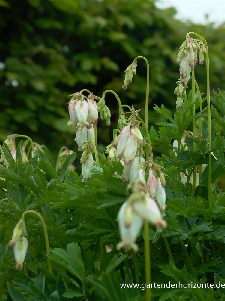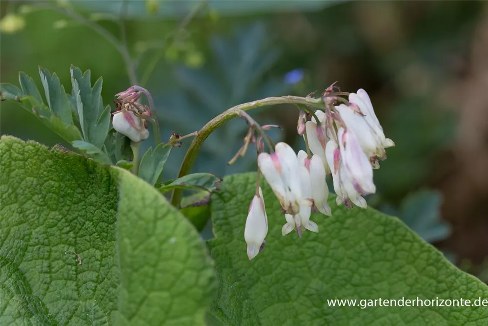 Dicentra formosa 'Aurora' bildet in Trauben angeordnete, cremeweiße Blüten ab Mai.