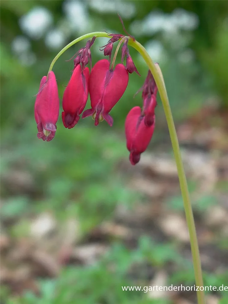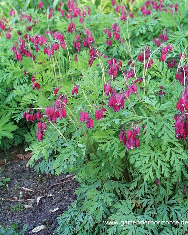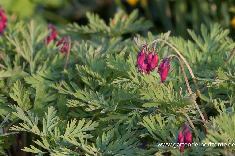Dicentra formosa 'Bacchanal' bildet in Trauben angeordnete, purpurrote Blüten ab Juni.