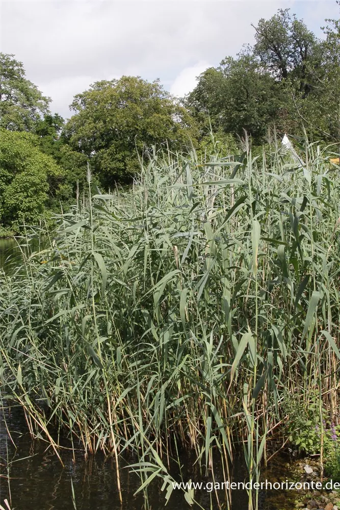 Das Gewöhnliche Schilf (Phragmites australis) ist mit seinen blau-grünen Blättern eine ausgesprochen dekorative Wasserpflanze, die für solche Einsatzbereiche wie Sichtschutz, Teichrand, Bachlauf und Teich besonders gut geeignet ist. Die Blüten erscheinen, je nach Sorte, in vielen Farben von Juli bis September. Es bevorzugt nährstoffreichen, lehmigen, feuchten bis nassen Boden in sonniger bis halbschattiger Lage. Das Gewöhnliche Schilf ist gut frostverträglich. Die aufrechte Staude erreicht gewöhnlich eine Höhe von ca. 2,5 m.