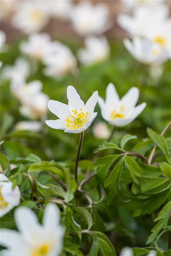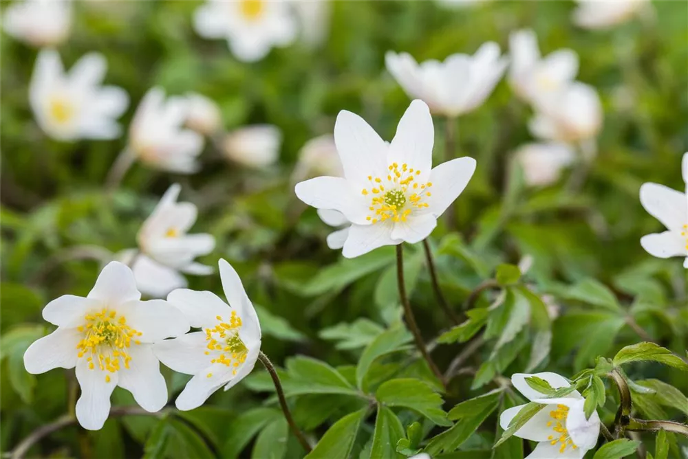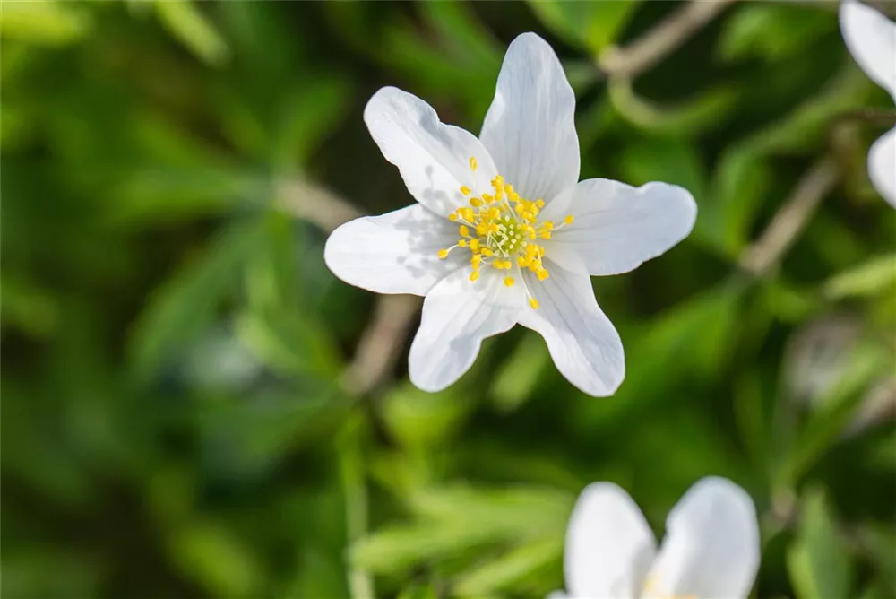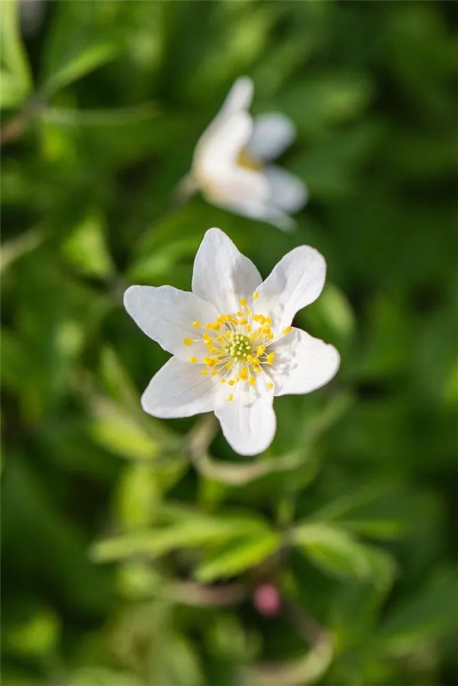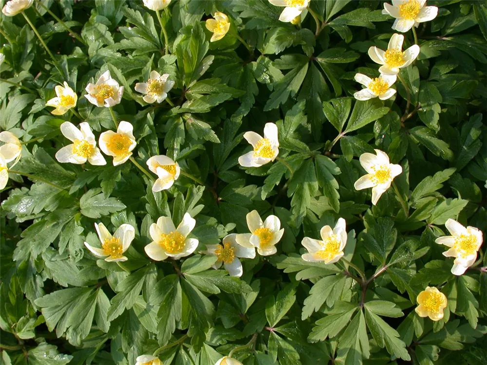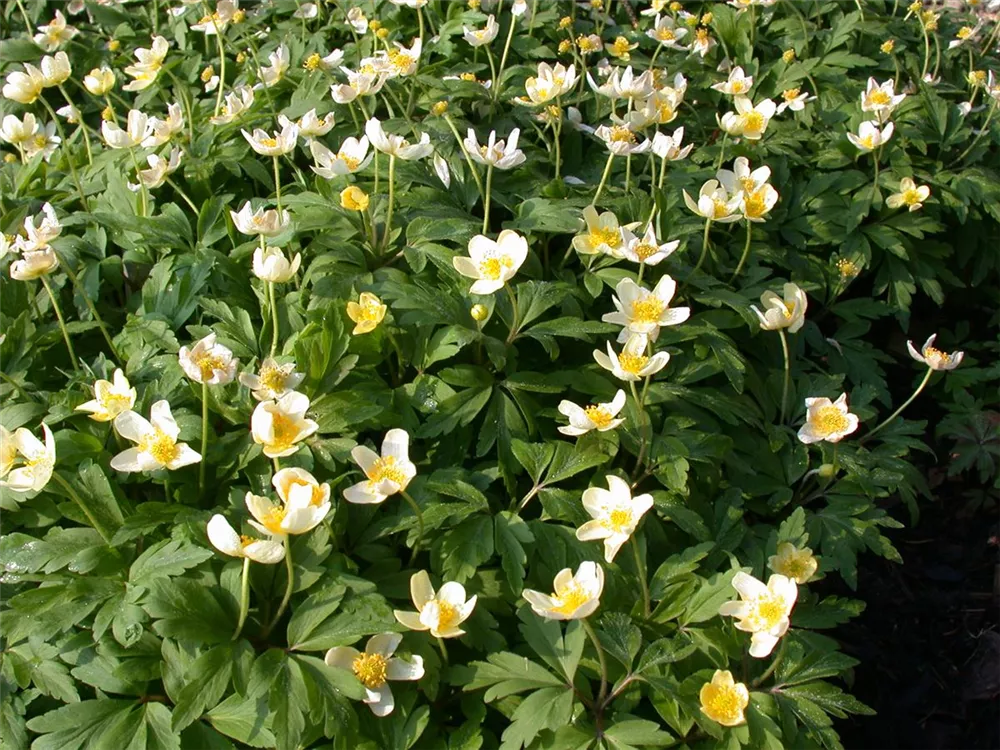 Das Busch-Windröschen (Anemone nemorosa) bringt ansehnliche, weiße Blüten von März bis April hervor. Bevorzugt wird ein durchlässiger, humoser Boden in halbschattiger bis schattiger Lage. Die kriechende, rhizombildende Staude erreicht gewöhnlich eine Höhe von 8 - 10 cm und wird bis zu 20 cm breit.