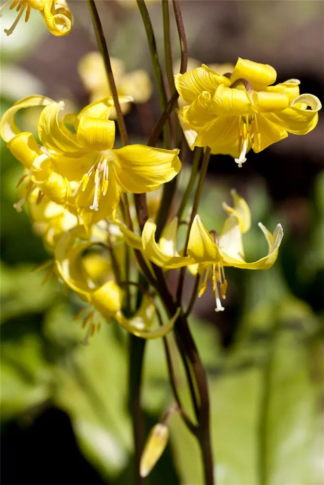 - Die Forellenlilie 'Pagoda' (Erythronium tuolumnense) bringt strahlend gelbe, angenehm duftende Blüten von April bis Mai hervor