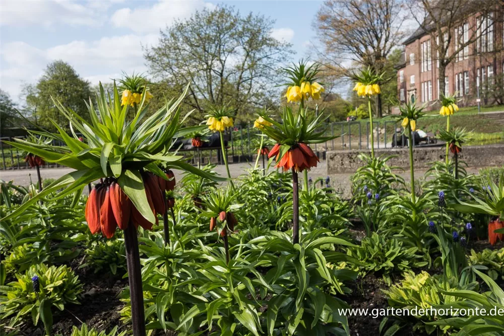 Die Garten-Kaiserkrone 'Rubra Maxima' setzt schöne Akzente gemeinsam mit: