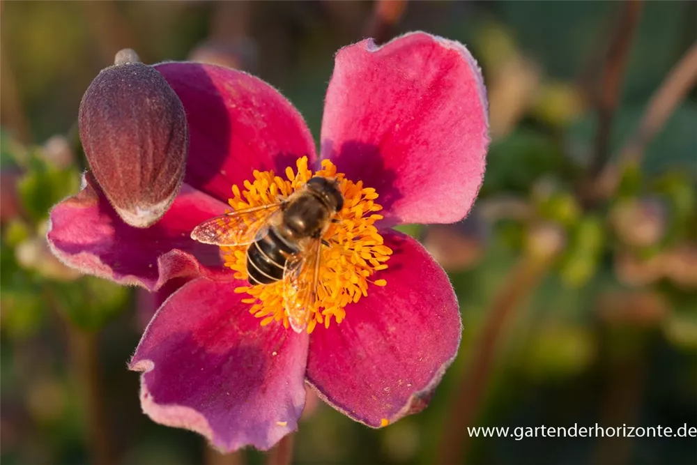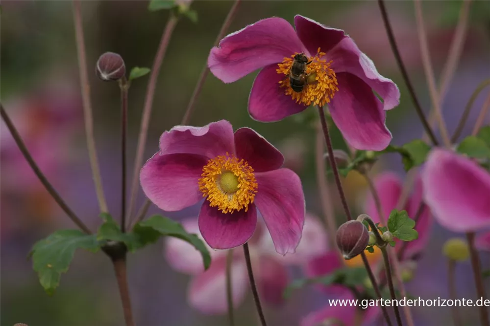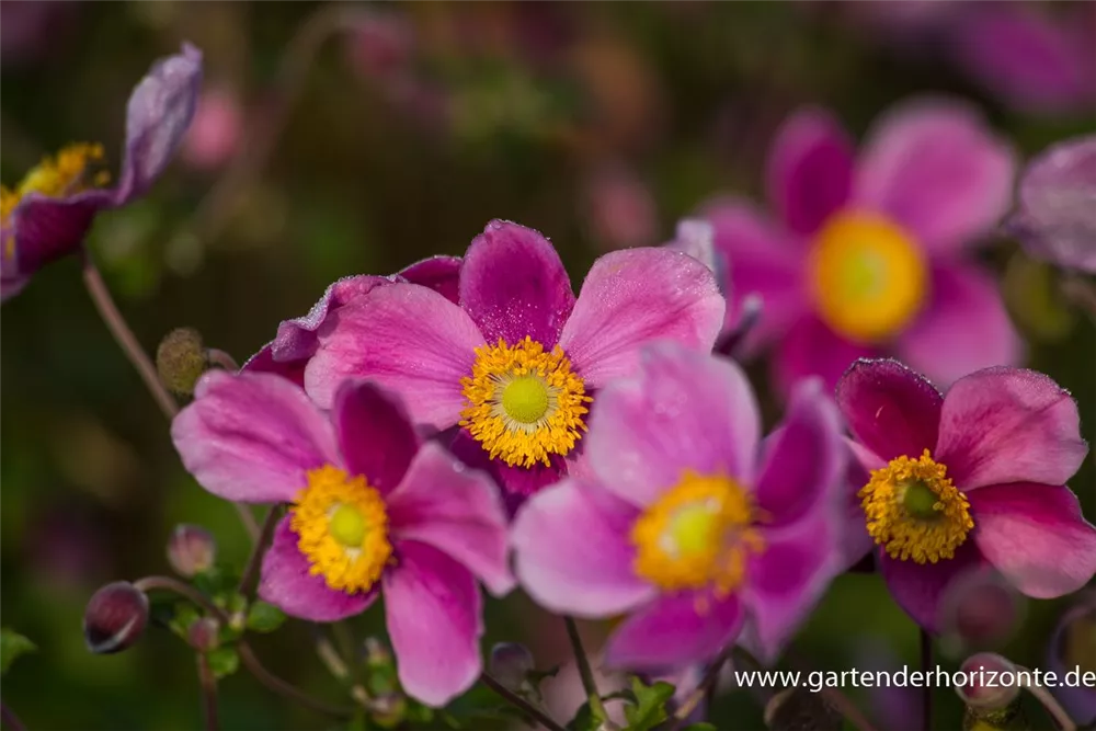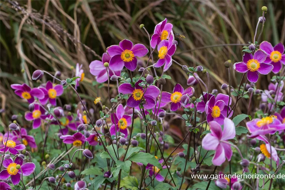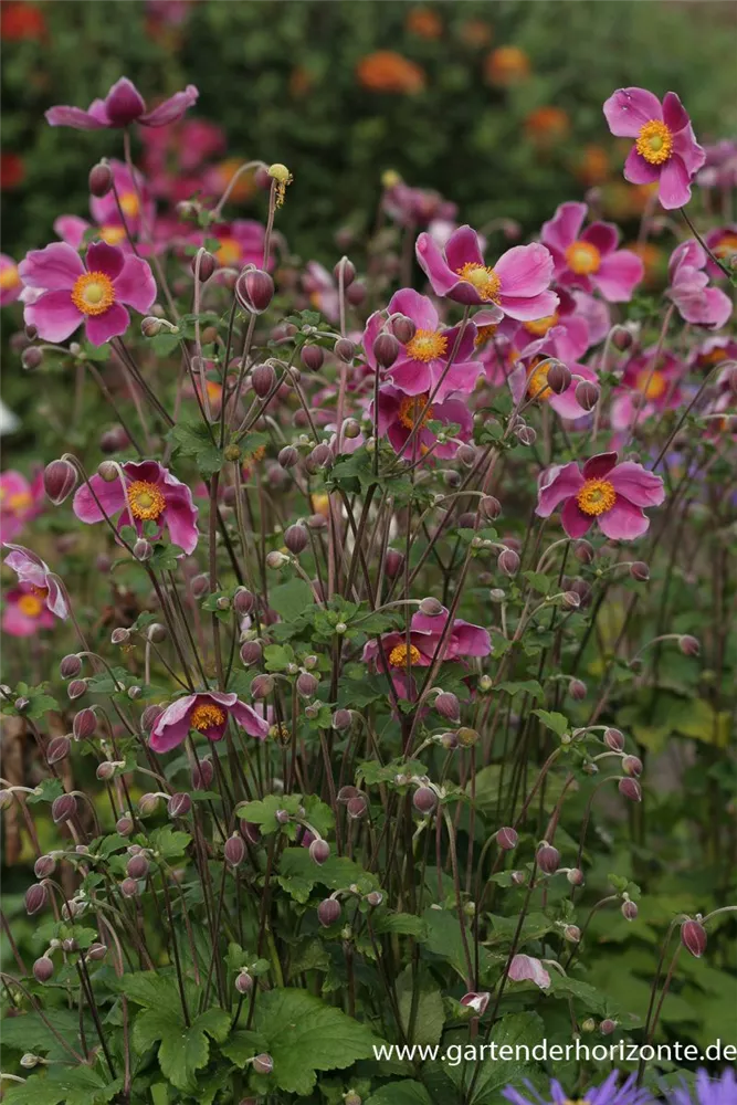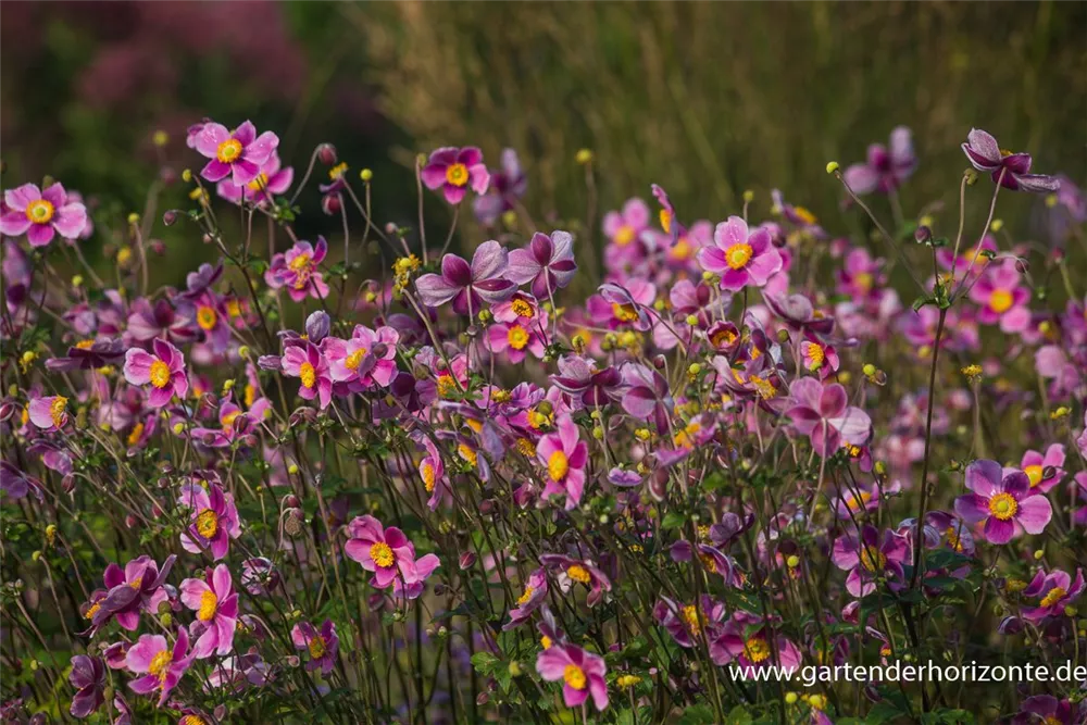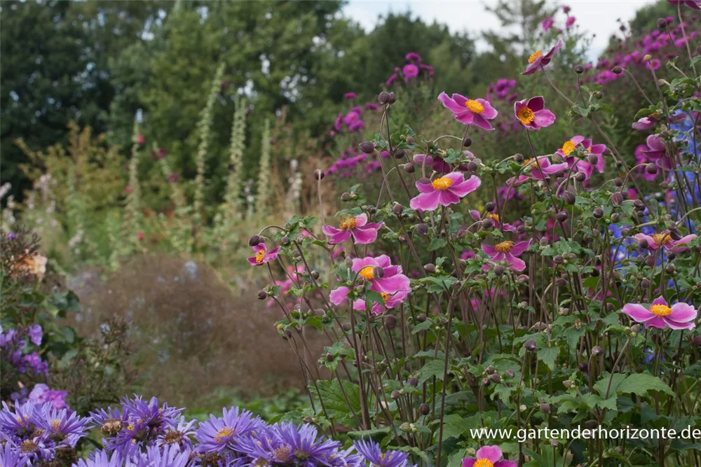 Die Japan-Herbst-Anemone 'Splendens' (Anemone hupehensis) bringt ansehnliche, pinke, leicht duftende Blüten von August bis Oktober hervor. Bevorzugt wird ein durchlässiger, humoser Boden in sonniger bis halbschattiger Lage. Die rhizombildende, aufrechte, schlanke Staude erreicht gewöhnlich eine Höhe von 1 - 1,2 m und wird bis zu 1 m breit.