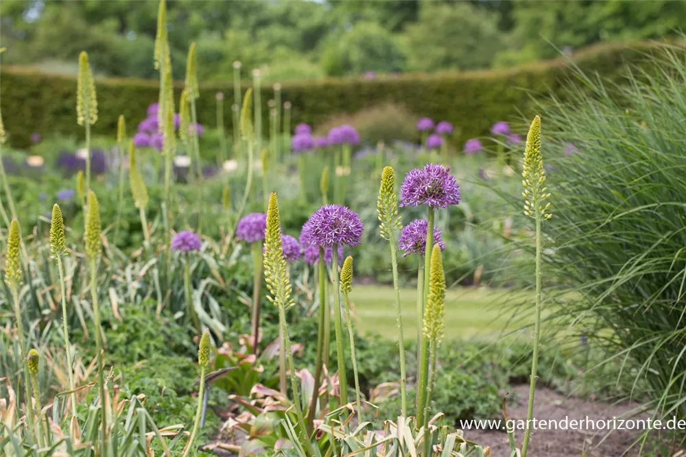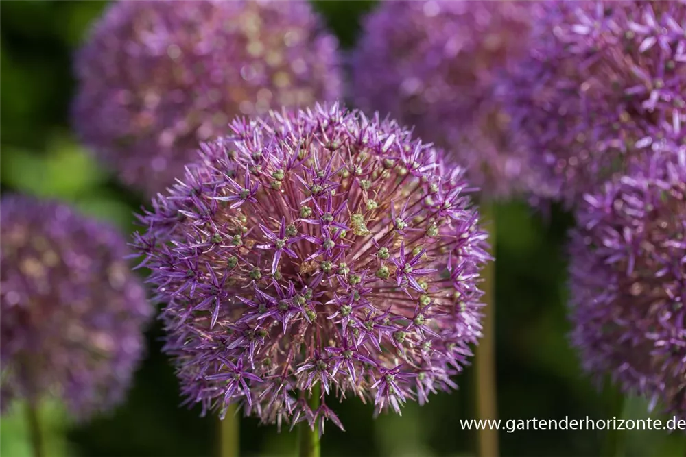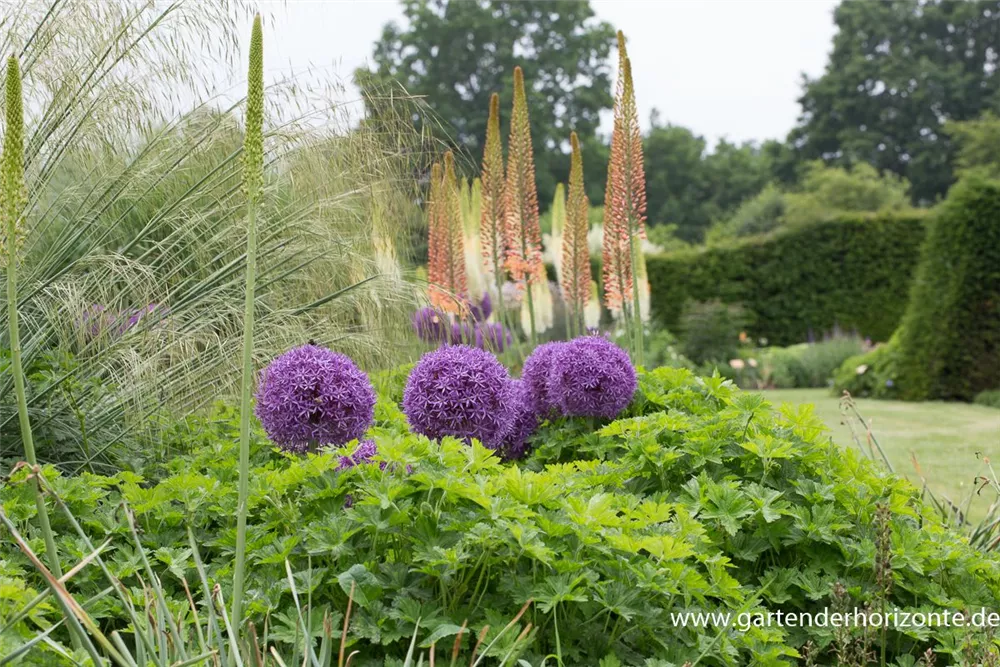 Die violetten Blüten des Garten-Zierlauch 'Globemaster' erscheinen in Dolden von Juni bis Juli.
