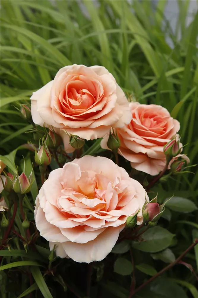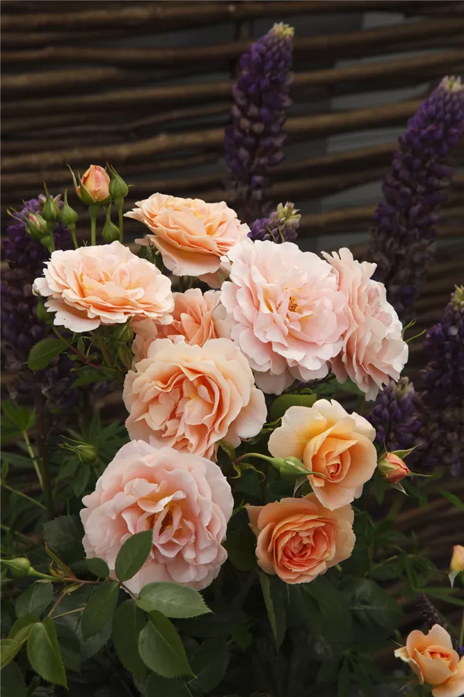 Die Topfrose (Rosa) ist eine reichblühende Rose, die im Garten eine besondere Rolle spielt. Die gefüllten Blüten sind apricot und erscheinen zahlreich von Juni bis Oktober. Mit den richtigen Begleitern an ihrer Seite, kommt die Königin der Blumen besonders gut zur Geltung. Niedrige Stauden, Lavendel und Salbei eignen sich ganz gut für diese Zwecke.