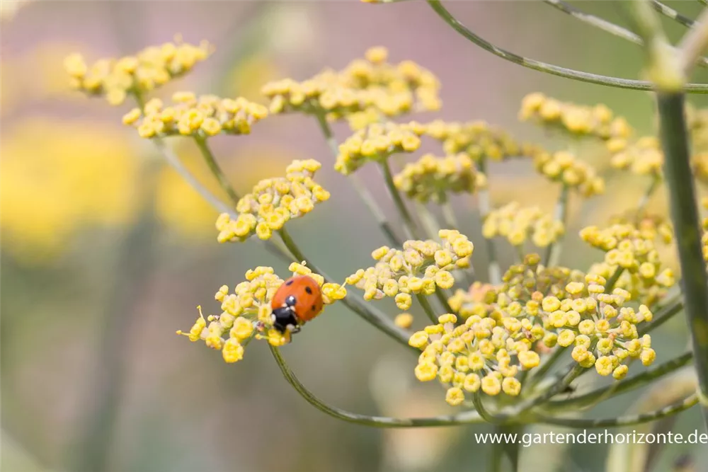 Der Dunkelblättrige Garten-Fenchel 'Atropurpureum' (Foeniculum vulgare) ist eine Kräuterpflanze mit einem würzigen Geschmack. Für das optimale Wachstum des Dunkelblättrigen Garten-Fenchels 'Atropurpureum' werden ein sonniger Standort und durchlässiger, nährstoffreicher Boden benötigt.