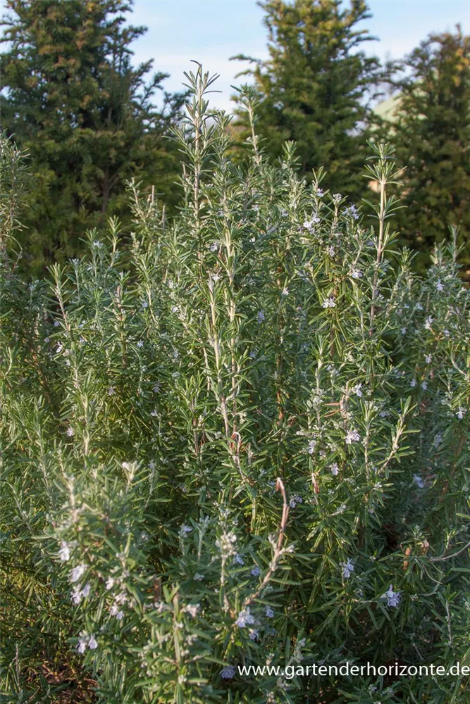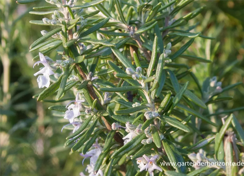 Der Rosmarin (Rosmarinus officinalis) ist eine angenehm duftende Kräuterpflanze mit einem aromatischen, würzigen Geschmack. Seine grau-grünen Blätter sind lanzettlich. Für das optimale Wachstum des Rosmarins werden ein sonniger Standort und durchlässiger, nährstoffreicher Boden benötigt.