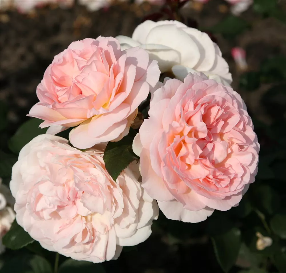 Die Beetrose 'Märchenzauber'® (Rosa) ist eine reichblühende Rose, die im Garten eine besondere Rolle spielt. Die zahlreichen starkgefüllten Blüten sind cremeweiß-rosa und erscheinen von Juni bis September. Ihr wunderbarer Duft entfaltet sich besonders an sonnigen, warmen Tagen. Mit den richtigen Begleitern an ihrer Seite, kommt die Königin der Blumen besonders gut zur Geltung. Niedrige Stauden, Lavendel und Salbei eignen sich ganz gut für diese Zwecke.