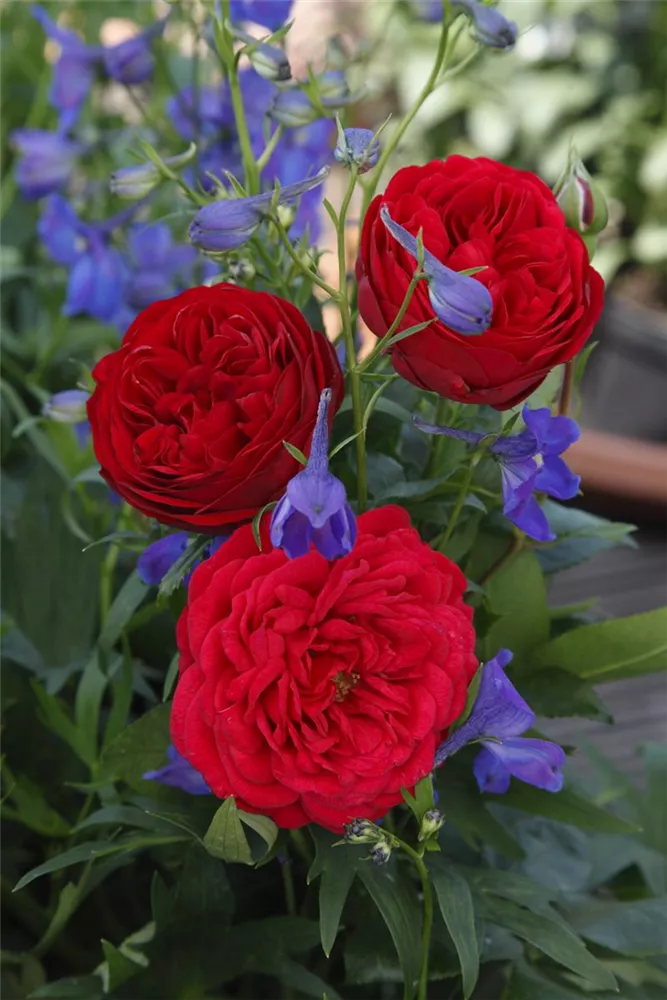 Die Beetrose 'Out of Rosenheim'® (Rosa) ist eine reichblühende Rose, die im Garten eine besondere Rolle spielt. Die starkgefüllten Blüten sind rot und erscheinen zahlreich von Juni bis September. Mit den richtigen Begleitern an ihrer Seite, kommt die Königin der Blumen besonders gut zur Geltung. Niedrige Stauden, Lavendel und Salbei eignen sich ganz gut für diese Zwecke.