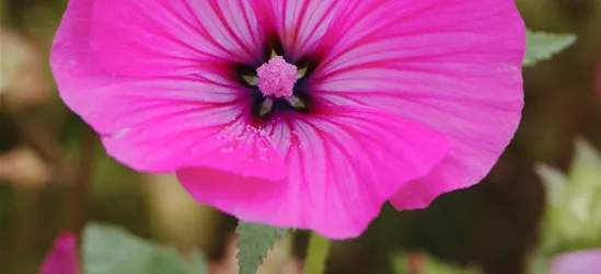 Lavatera trimestris 'Pink Beauty' bildet während der gesamten Saison zahlreiche schalenförmige, rosafarbene Blüten. Diese werden etwa 8 - 10 cm groß.