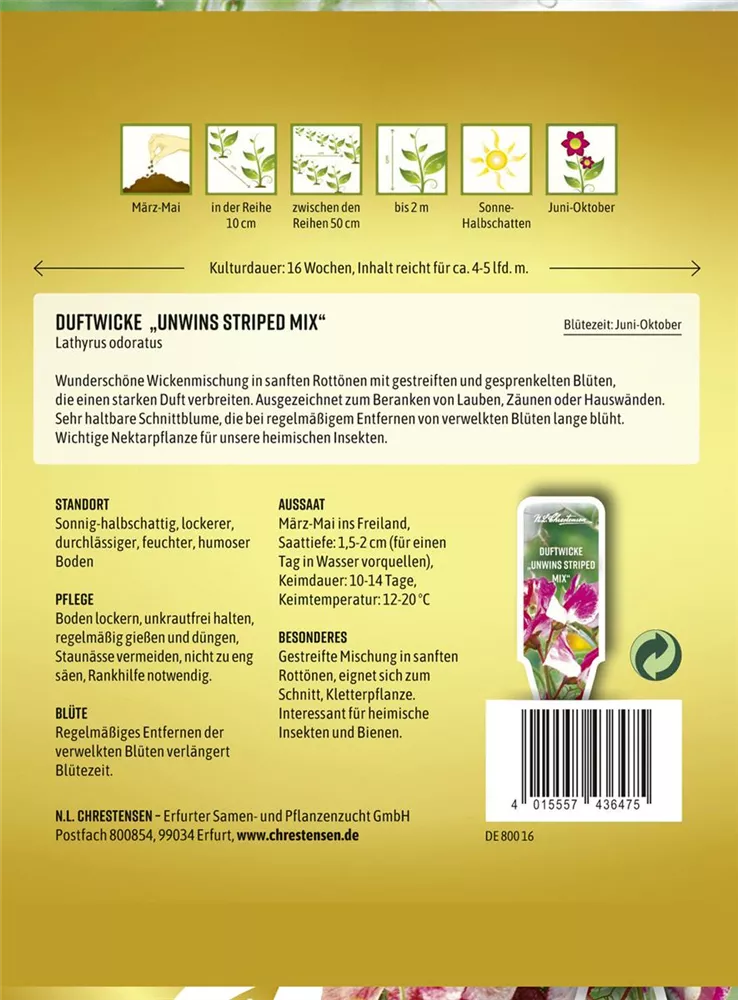 Die Duftwicke 'Unwins Striped' ist als Schnittpflanze, aber auch zur Gruppenbepflanzung, als Bienenweide oder im Duftgarten sehr beliebt.