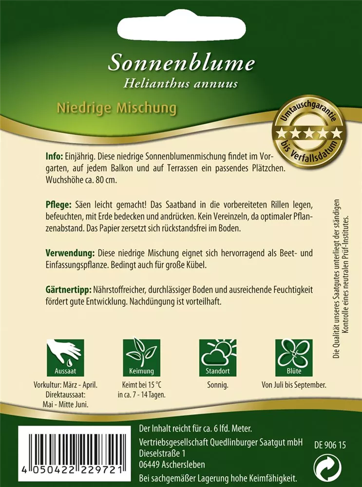 Die Sonnenblume 'Niedrige Mischung' ist als Kübelpflanze, aber auch als Schnittpflanze, zur Gruppenbepflanzung, im Bauerngarten oder als Bienenweide sehr beliebt.