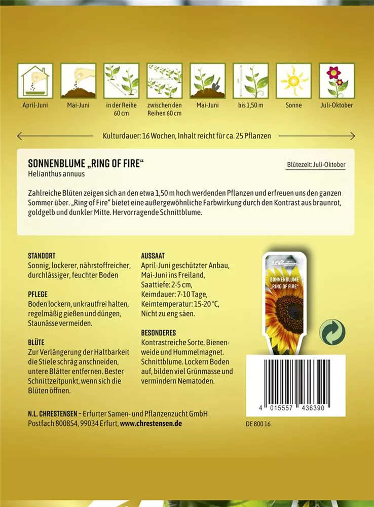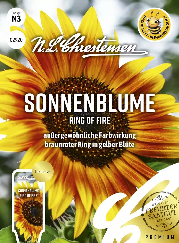 Die Sonnenblume 'Ring of Fire' ist als Kübelpflanze, aber auch als Schnittpflanze, zur Gruppenbepflanzung, im Bauerngarten oder als Bienenweide sehr beliebt.