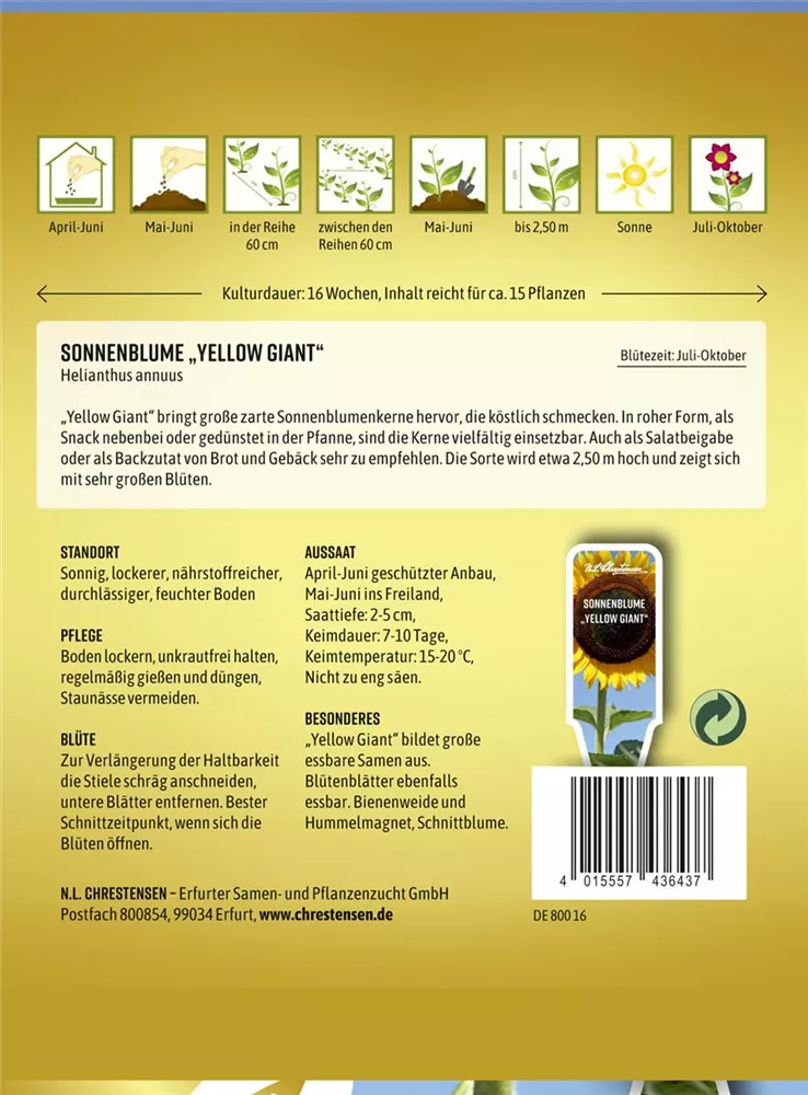 Die Sonnenblume 'Yellow Giant' ist als Schnittpflanze, aber auch zur Gruppenbepflanzung, im Bauerngarten oder als Bienenweide sehr beliebt.