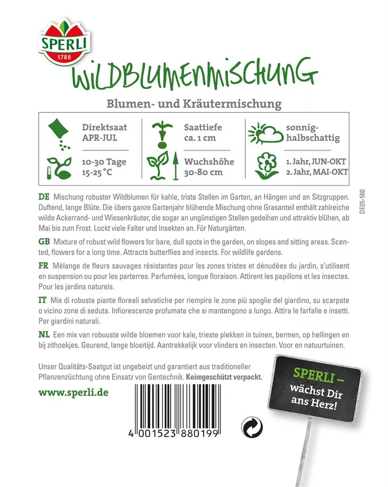 Aussaat ins Freiland: Im Zeitraum von April bis Juni.