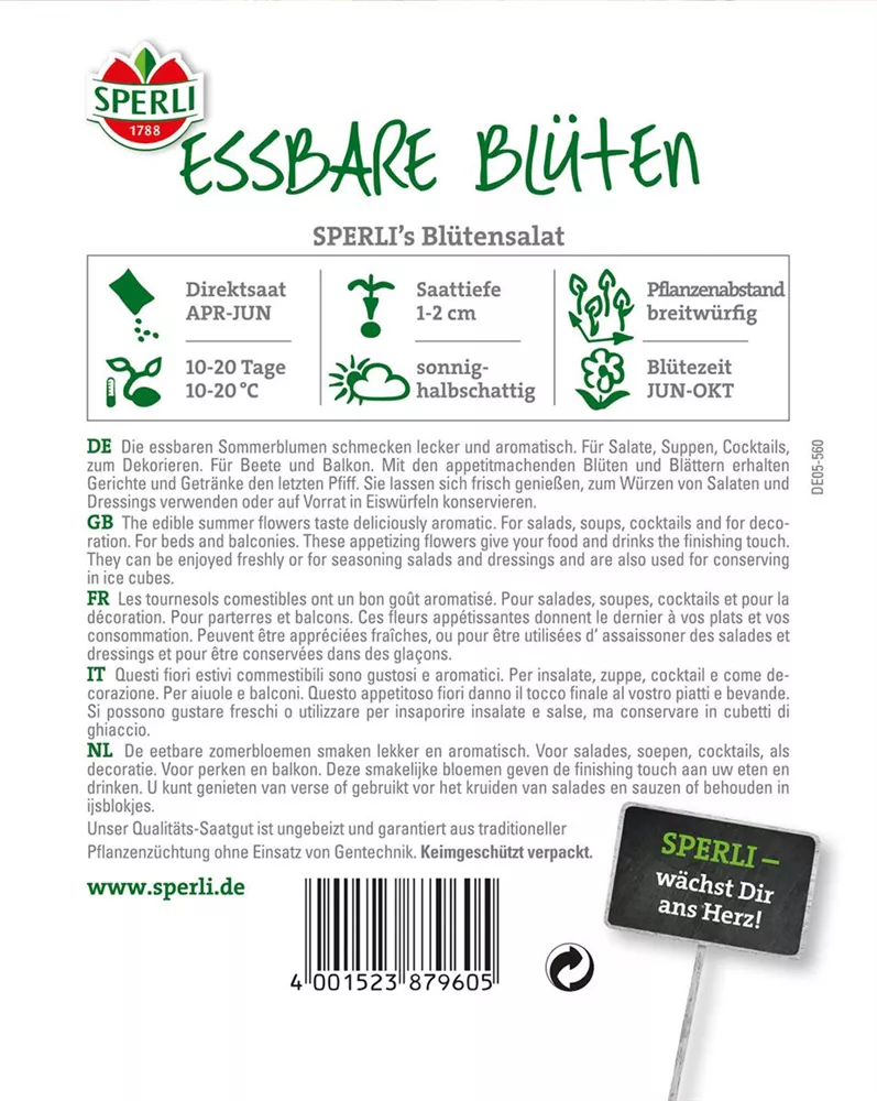 • Aussaat ins Freiland: Im Zeitraum von April bis Juni