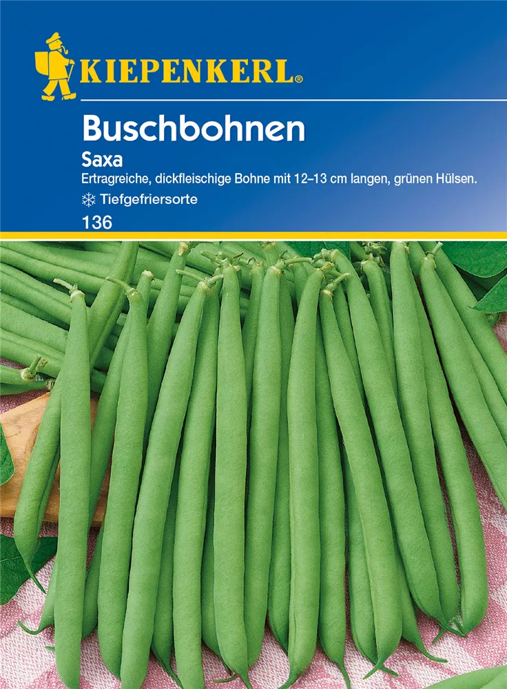 Die Busch-Bohne 'Saxa' (Phaseolus vulgaris) bildet Hülsenfrüchte, die aromatisch schmecken und bereits ab Juli geerntet werden können. Für das optimale Wachstum der Busch-Bohne 'Saxa' werden ein sonniger Standort und durchlässiger, nährstoffreicher Boden benötigt.