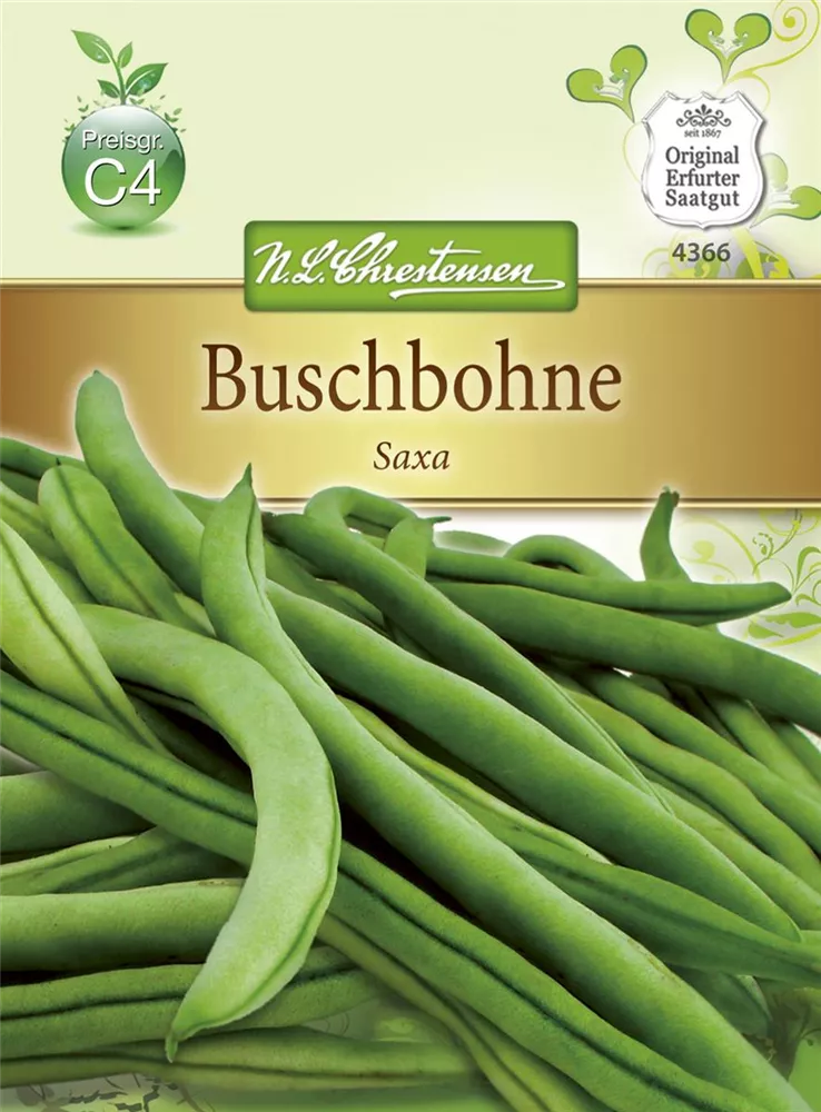 Die Busch-Bohne 'Saxa' (Phaseolus vulgaris) bildet Hülsenfrüchte, die aromatisch schmecken und bereits ab Juli geerntet werden können. Für das optimale Wachstum der Busch-Bohne 'Saxa' werden ein sonniger Standort und durchlässiger, nährstoffreicher Boden benötigt.