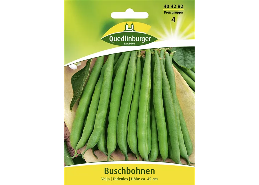 Die Busch-Bohne 'Valja' (Phaseolus vulgaris) bildet Hülsenfrüchte, die aromatisch schmecken und bereits ab Juli geerntet werden können. Für das optimale Wachstum der Busch-Bohne 'Valja' werden ein sonniger Standort und durchlässiger, nährstoffreicher Boden benötigt.