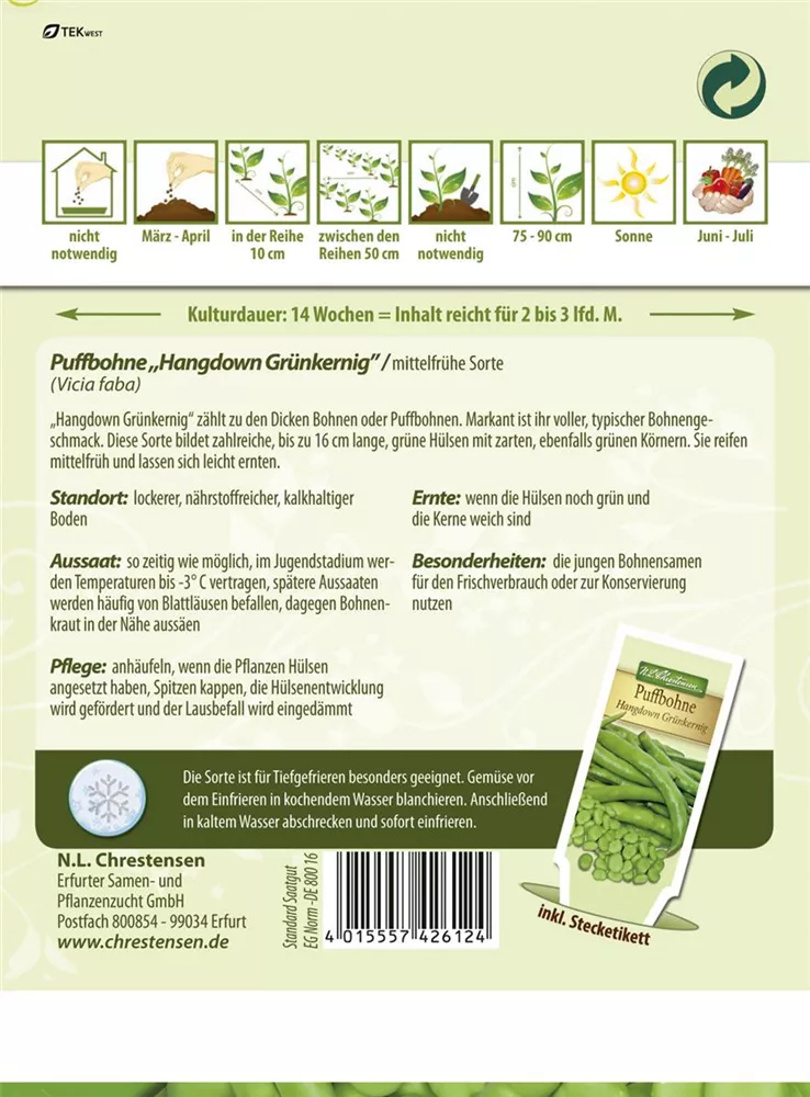 Die Puffbohne 'Hangdown Grünkernig' ist im Gemüsegarten, aber auch zum Kochen, für Salat oder für Suppen & Eintöpfe sehr beliebt.
