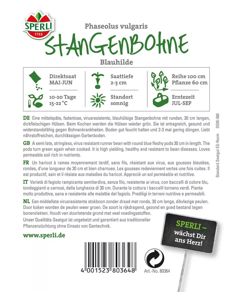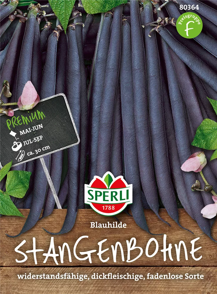 Stangen-Bohne 'Blauhilde' ist auch unter diesem Namen bekannt: Stangenbohne.