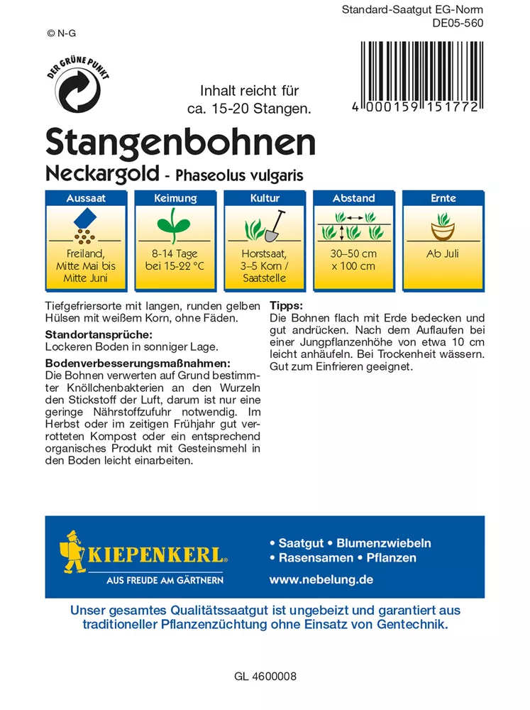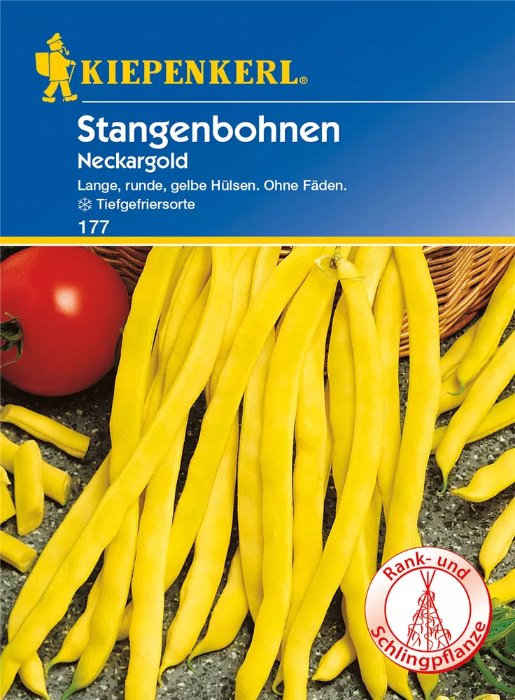 Stangen-Bohne 'Neckargold' ist auch unter diesem Namen bekannt: Stangenbohne.