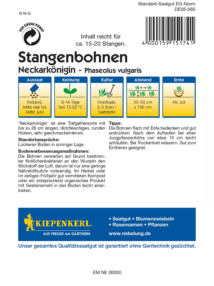 Stangen-Bohne 'Neckarkönigin' ist auch unter diesem Namen bekannt: Stangenbohne.