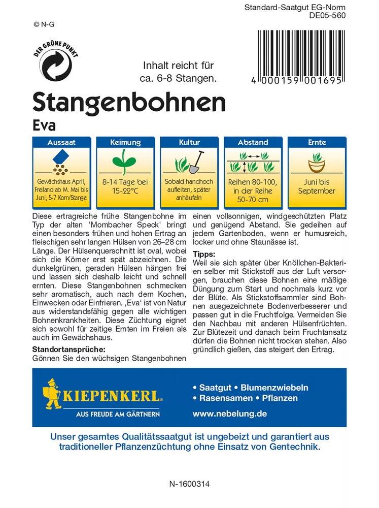 Stangenbohne 'Eva' ist auch unter diesem Namen bekannt: Stangenbohne.