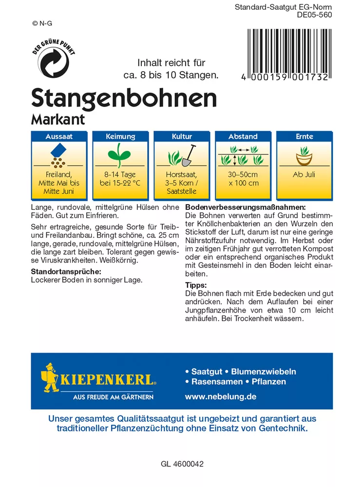 Stangenbohne 'Markant' ist auch unter diesem Namen bekannt: Stangenbohne.