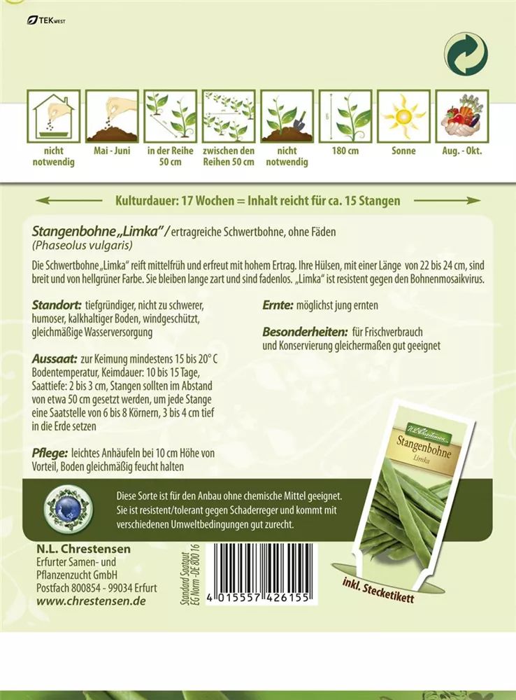 Stangenbohne 'Limka' ist auch unter diesem Namen bekannt: Stangenbohne