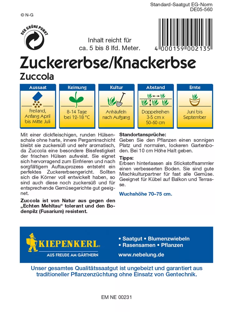 Zuckererbse 'Zuccola' ist auch unter diesem Namen bekannt: Gartenerbse oder Speiseerbse.