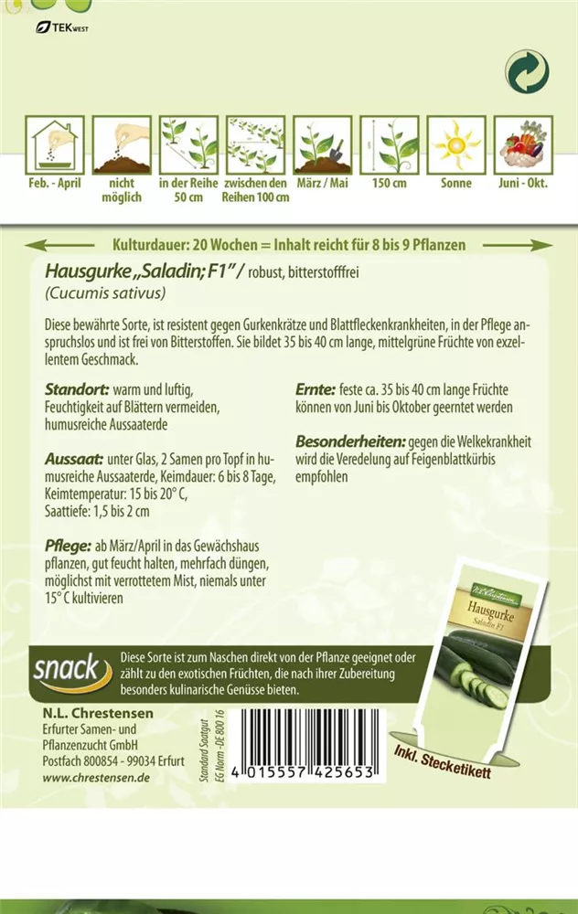 Die Gurke 'Saladin' ist im Gemüsegarten, aber auch zum Frischverzehr, zum Kochen oder für Salat sehr beliebt.