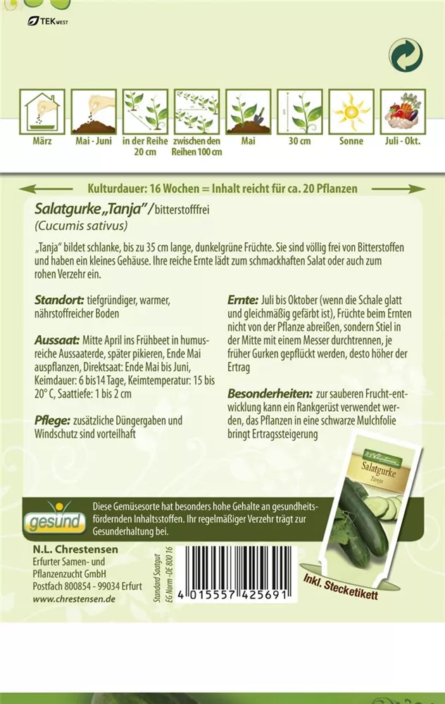 Die Gurke 'Tanja' ist im Gemüsegarten, aber auch zum Frischverzehr, zum Kochen oder für Salat sehr beliebt.