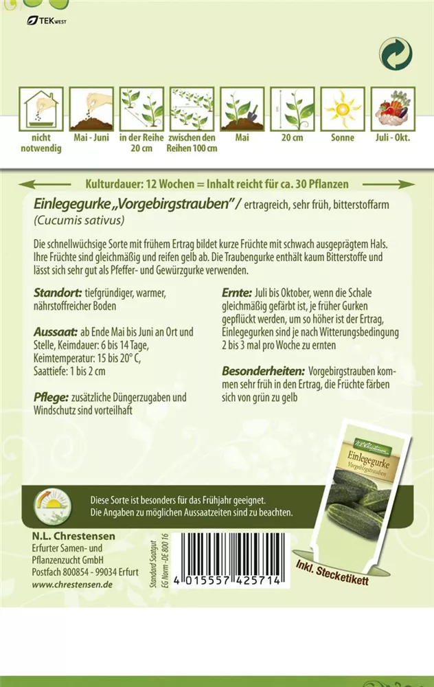 Die Einlege-Gurke 'Vorgebirgstrauben' ist im Gemüsegarten, aber auch zum Frischverzehr, zum Kochen oder für Salat sehr beliebt.