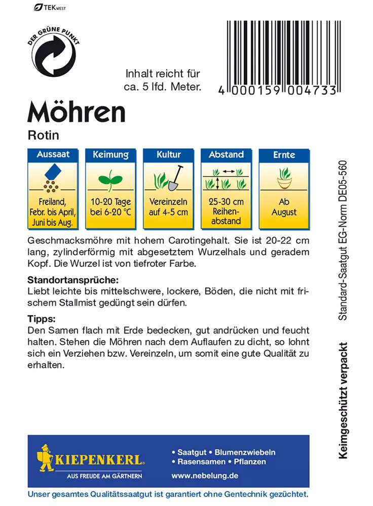 Für das optimale Wachstum der Möhre 'Rotin' werden ein sonniger Standort und durchlässiger, nährstoffreicher Boden benötigt.