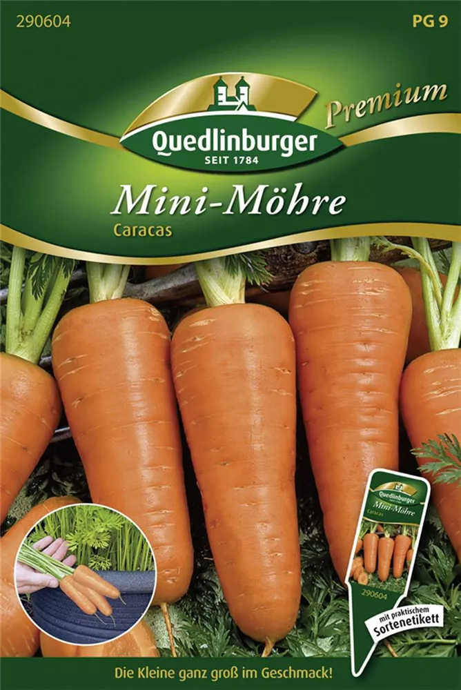 Die Möhre 'Caracas' (Daucus carota var. sativus) bildet Wurzeln, die aromatisch schmecken und bereits ab Juni geerntet werden können. Für das optimale Wachstum der Möhre 'Caracas' werden ein sonniger Standort und durchlässiger, nährstoffreicher Boden benötigt.