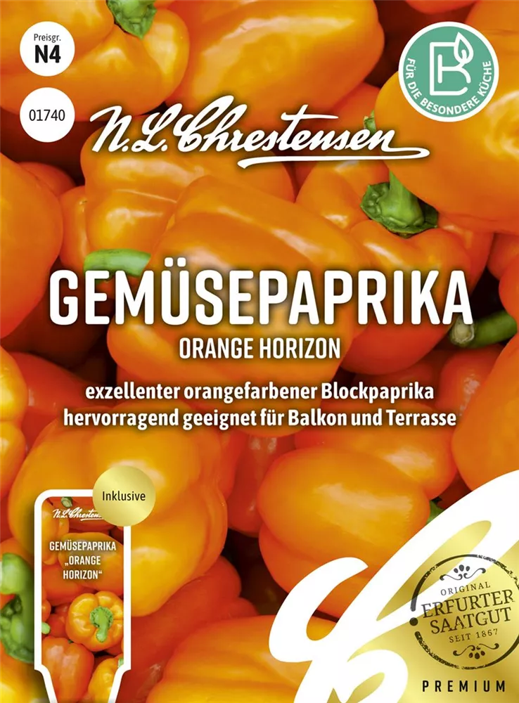Der Gemüsepaprika 'Orange Horizon' ist als Kübelpflanze, aber auch im Gemüsegarten, zum Frischverzehr, zum Kochen, für Salat, für Saucen & Dips, für vegetarische Gerichte oder für Suppen & Eintöpfe sehr beliebt.