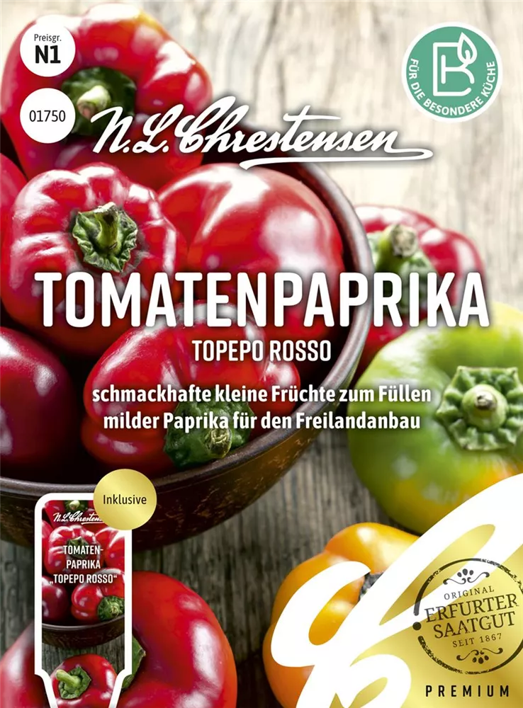 Der Tomatenpaprika 'Topepo' ist als Kübelpflanze, aber auch im Gemüsegarten, zum Frischverzehr, zum Kochen, für Salat, für Saucen & Dips, für vegetarische Gerichte oder für Suppen & Eintöpfe sehr beliebt.