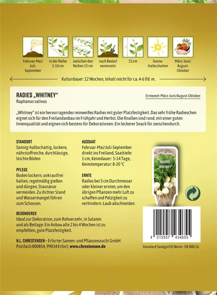 - Aussaat im Freiland von Februar bis Mai, von Juli bis September