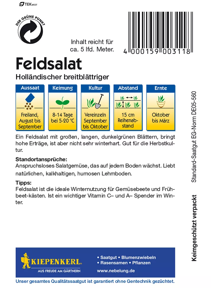Aussaat ins Freiland von Juli bis September.