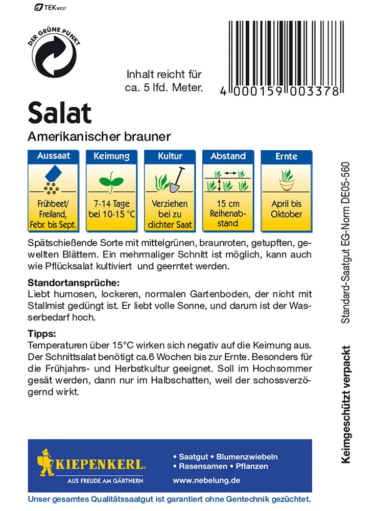 Aussaat ins Freiland von Mai bis September.