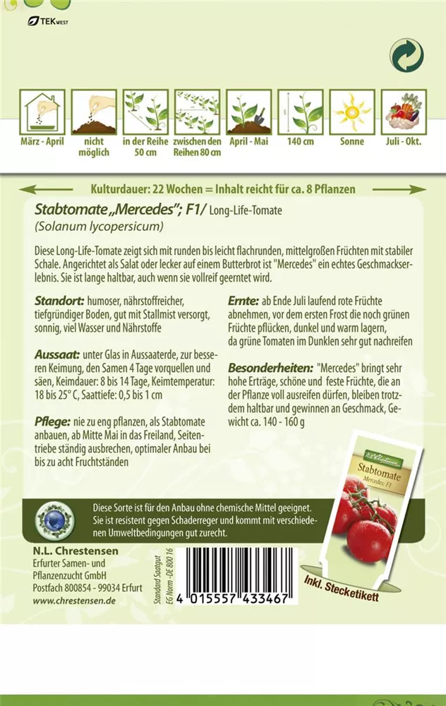 - Aussaat in Schalen oder Saatkisten von März bis April möglich