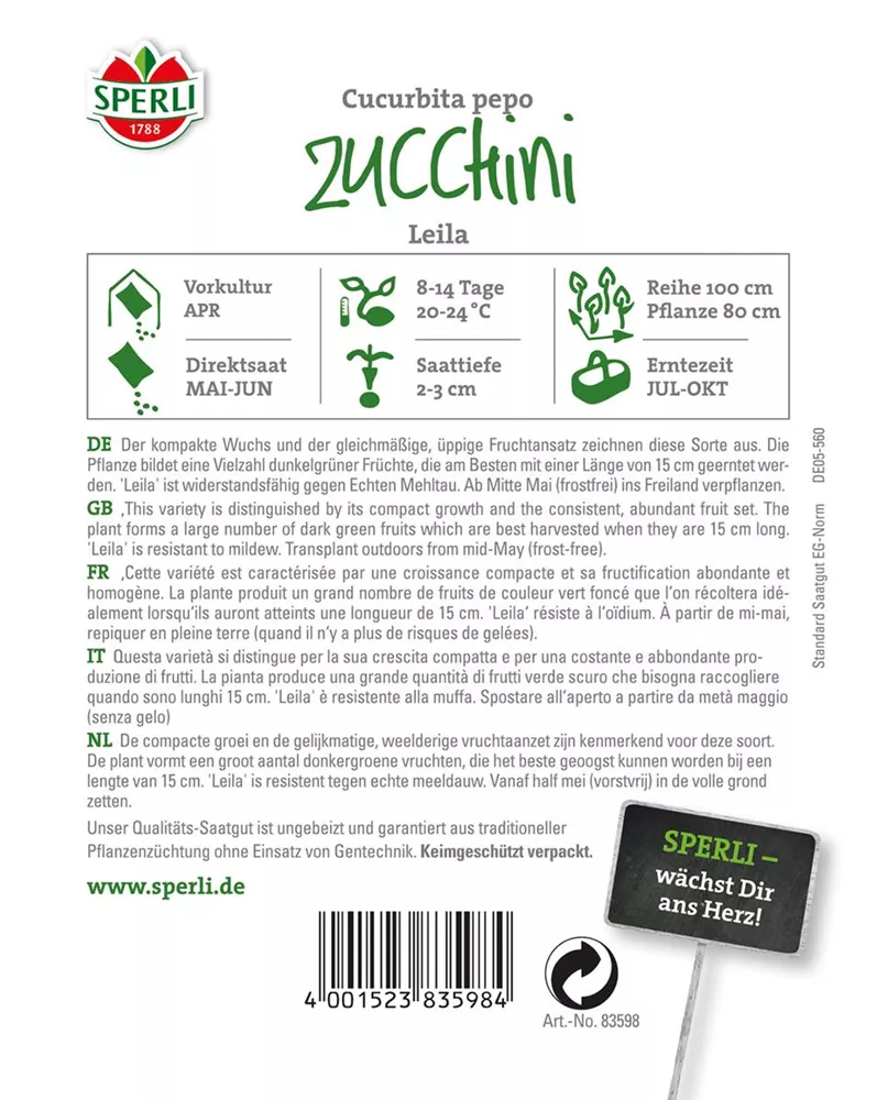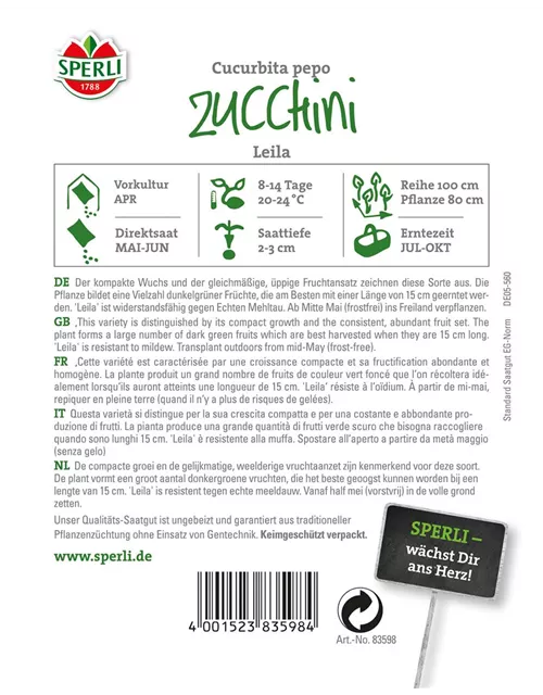 Zucchini 'Leila F1' ist auch unter diesem Namen bekannt: Zucchetti oder Courgette.