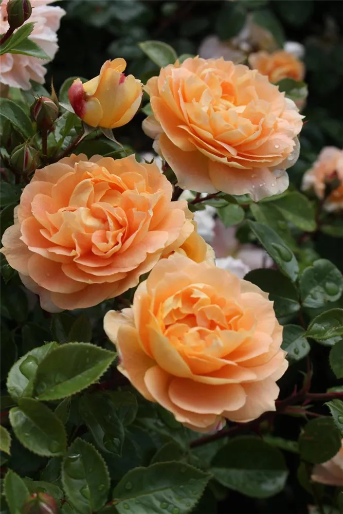 Die Beetrose 'Schöne vom See'® (Rosa) ist eine reichblühende Rose, die im Garten eine besondere Rolle spielt. Die starkgefüllten Blüten sind rot, gelb, weiß, rosa, apricot und erscheinen zahlreich von Juni bis September. Mit den richtigen Begleitern an ihrer Seite, kommt die Königin der Blumen besonders gut zur Geltung. Niedrige Stauden, Lavendel und Salbei eignen sich ganz gut für diese Zwecke.