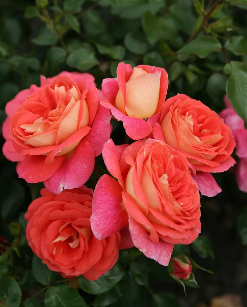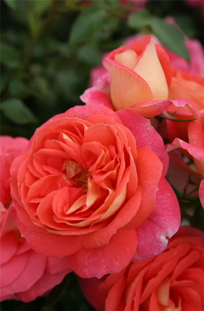 Wüchsige, buschige Beetrose mit edlen, zweifarbigen Knospen, die sich zu großen, stark gefüllten Blütenschalen öffnen. Sehr hohe Blattgesundheit und großer Blühreichtum.