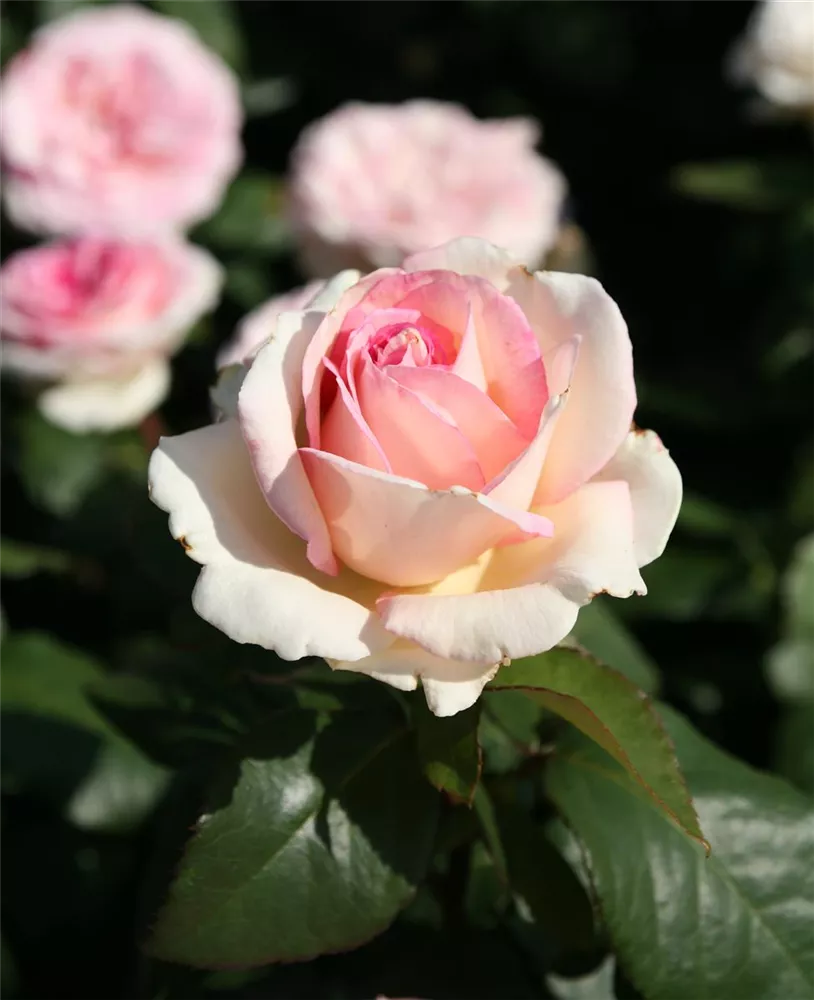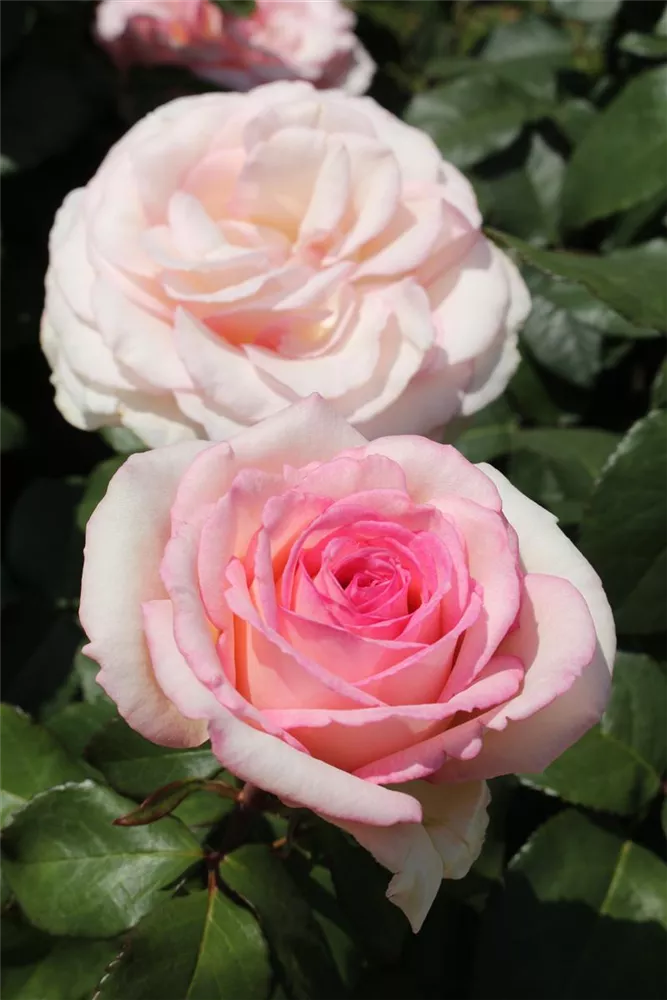 Die Edelrose 'Souvenir de Baden-Baden'® (Rosa) ist eine reichblühende Rose, die im Garten eine besondere Rolle spielt. Die zahlreichen starkgefüllten Blüten sind cremeweiß-rosa und erscheinen von Juni bis Oktober. Ihr wunderbarer Duft entfaltet sich besonders an sonnigen, warmen Tagen. Mit den richtigen Begleitern an ihrer Seite, kommt die Königin der Blumen besonders gut zur Geltung. Niedrige Stauden, Lavendel und Salbei eignen sich ganz gut für diese Zwecke.